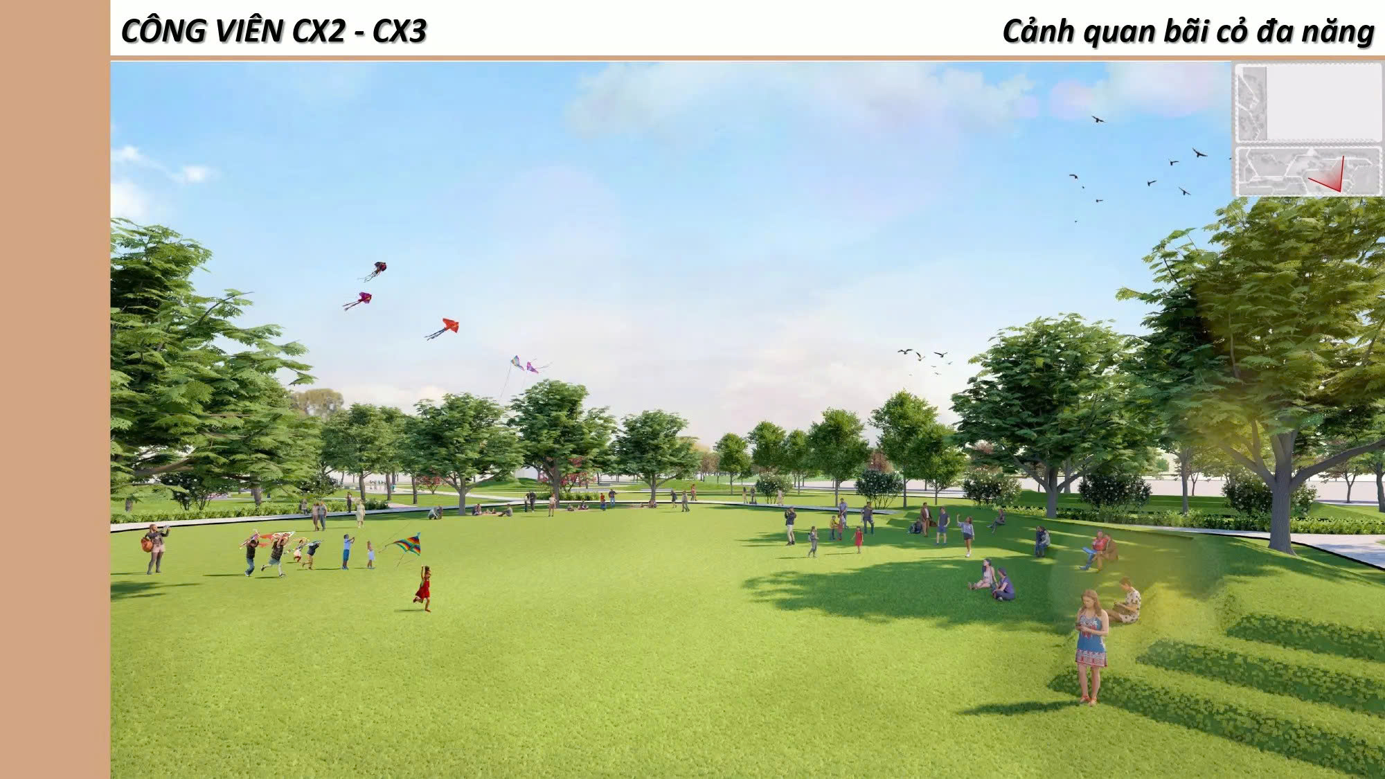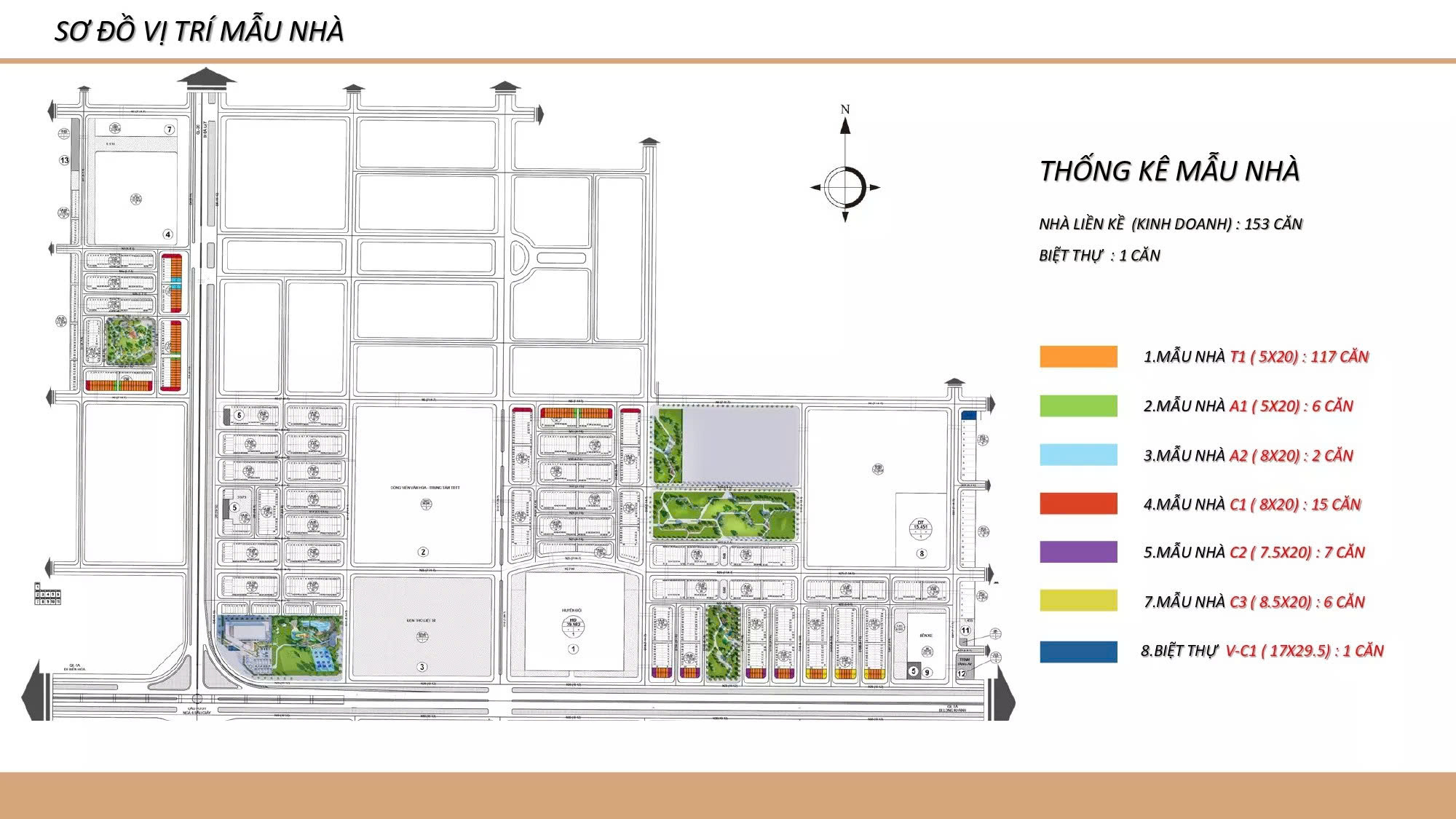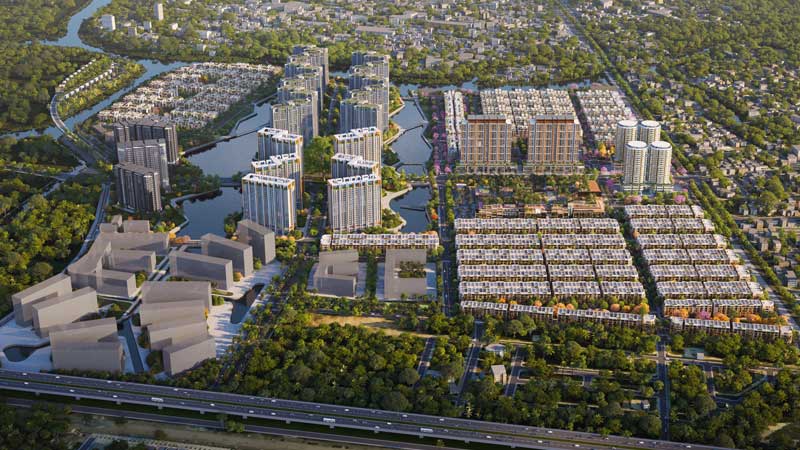 | Hạ tầng nội khu: | Đường nội bộ 14–28 m trải nhựa, điện – nước âm, vỉa hè rộng, công viên, trường học |